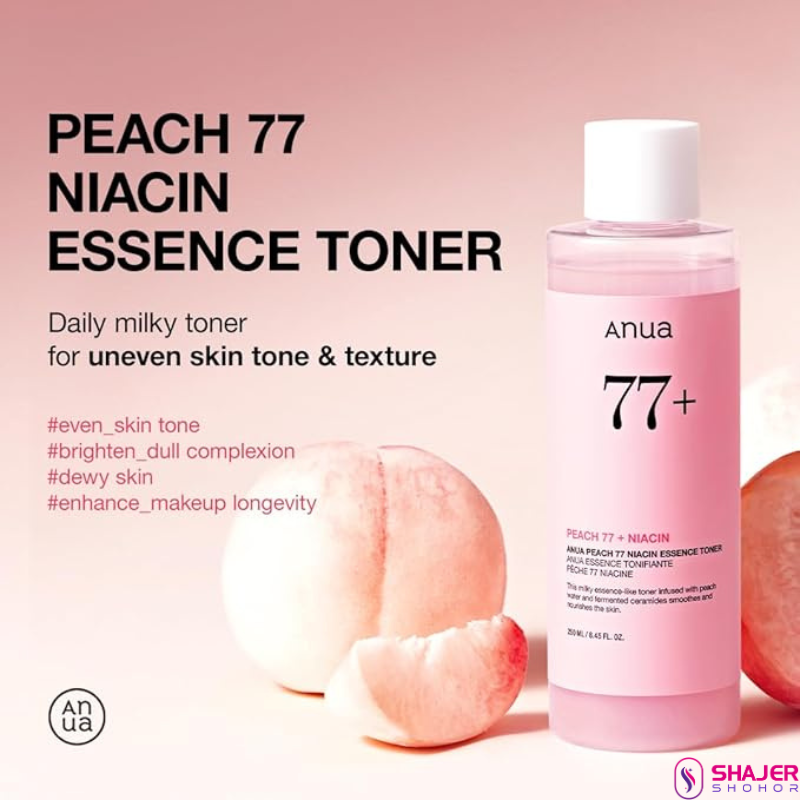 A lightweight hydrating essence toner with 77% Prunus Persica(Peach) Fruit Extract that helps creating a long-lasting and smooth makeup base.