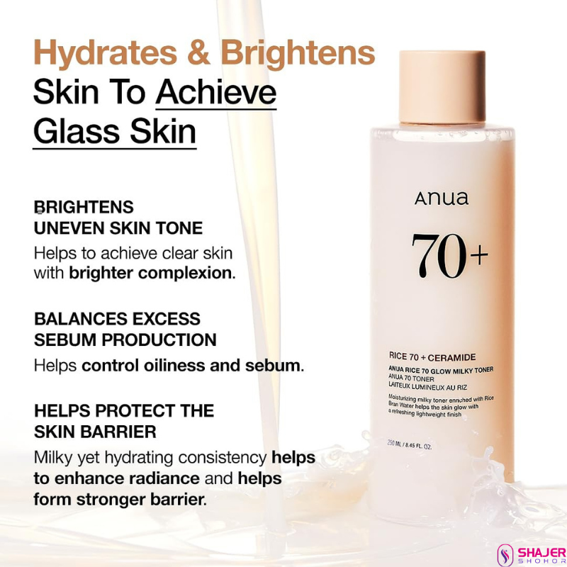 MilkyProvides intense moisture with a blend of Rice Water, Niacinamide and Ceramides, yet leaves a refreshing non-sticky finish to achieve glass skin. Contains 70% ANUA RICE WATER+ and Niacinamide to brighten dull skin and provides even and radiant complexion. Contains ANUA RICE CERA-PROTEIN, a blend of Ceramides and Protein which make up the skin’s natural barrier, to strengthen and protect the skin barrier. Formulated with Panthenol, Glycerin and Allantoin to soothe irritated skin and provide instant hydration and moisture.