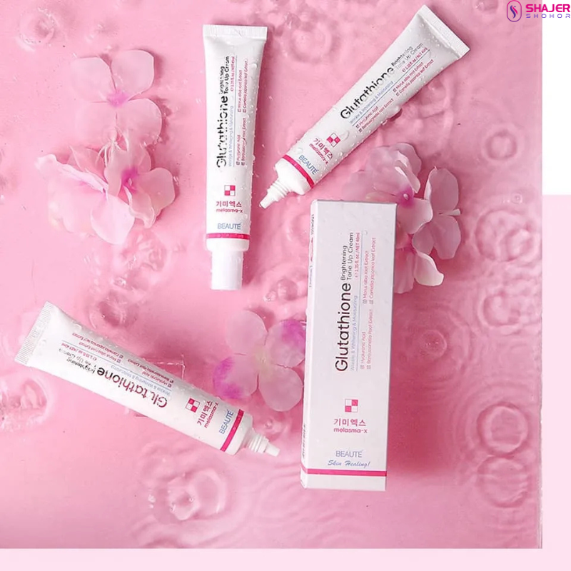 CreamThe Beaute Glutathione Brightening Tone Up Cream specifically claims to provide an instant brightening effect and improve skin tone by reducing the appearance of dark spots and hyperpigmentation. It also contains glutathione, a powerful antioxidant that is believed to have skin brightening and anti-aging benefits. Other ingredients in the cream may include niacinamide, arbutin, and various plant extracts that help to improve the overall health and appearance of the skin.
