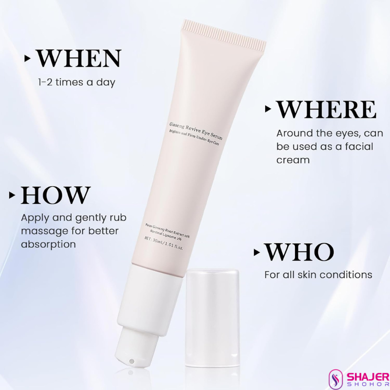 Gel-CreamA targeted anti-aging eye serum that helps diminish fine lines, puffiness, and dark circles around the delicate eye area. The Beauty of Joseon Revive Eye Serum blends traditional Korean herbal wisdom with modern dermatological science combining Ginseng Root Extract, Retinal, and Encapsulated Liposomes to visibly lift, smooth, and brighten tired under-eyes.