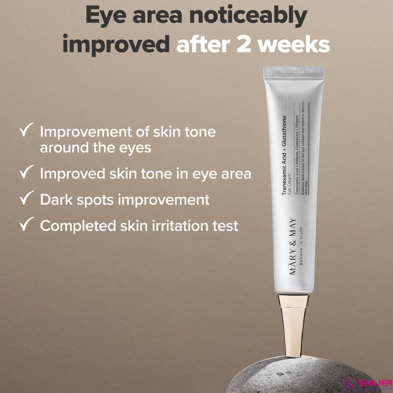 Mary&May Tranexamic Acid + Glutathione Eye cream, 1,000ppm tranexamic acid, 1,000ppm Glutathione for intensive care for dark circles in the eye contour.Expiration Date: