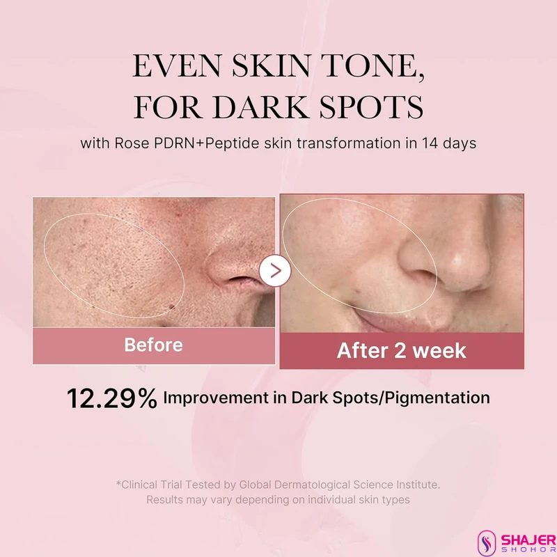 Salmon PDRN: Salmon PDRN supports skin vitality and helps improve overall skin condition, giving your skin a clearer, more radiant appearance. It promotes a more even skin tone and a natural glow by enhancing skin health.