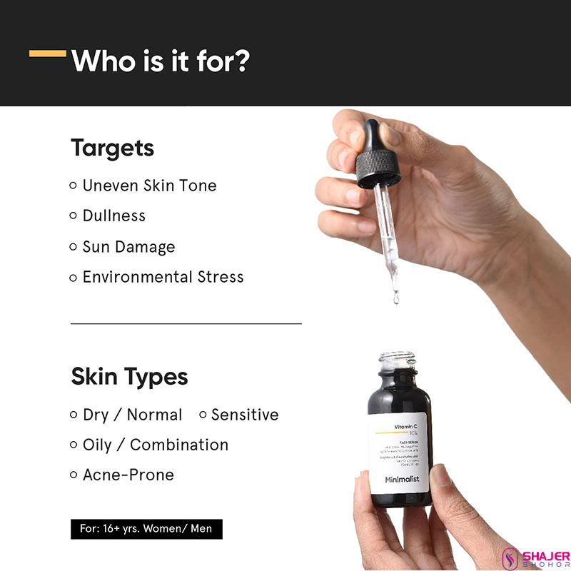 Made with stabilized Vitamin C derivative "Ethyl Ascorbic Acid" that has 86% pure Vitamin C content. That is much higher than 40-50% content present in other Vitamin C derivatives. At a pH of ~4.0 it is highly stable and effective