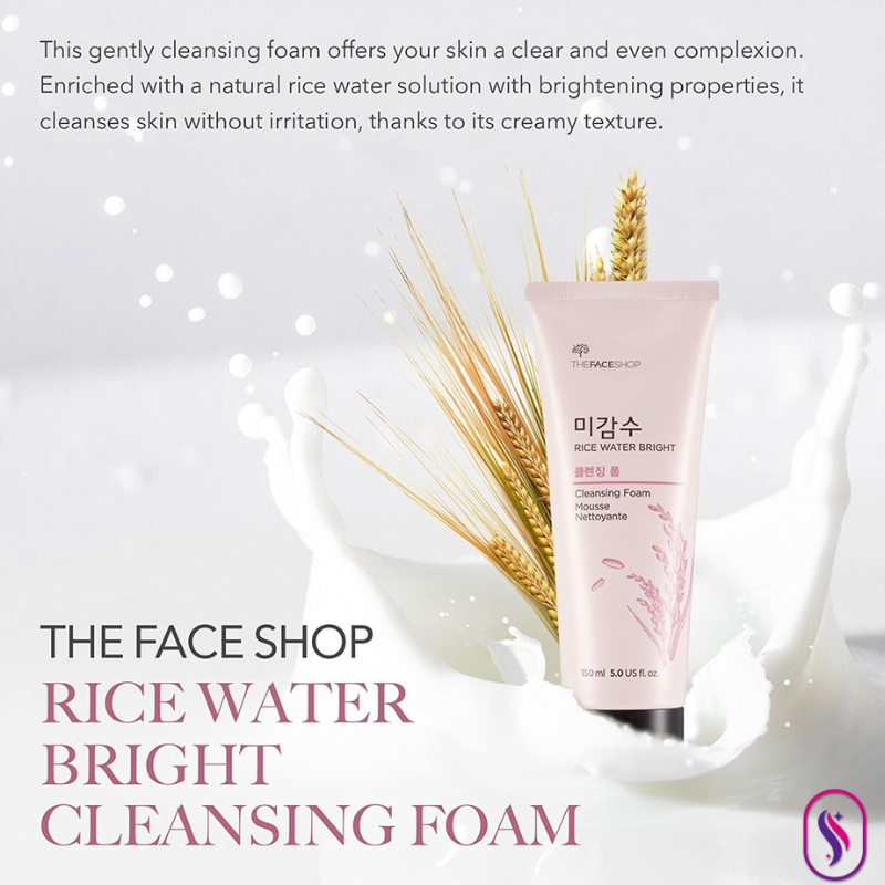 Cream-To-FoamTHE FACE SHOP Rice Water Bright Foaming Cleanser is a gentle yet effective daily cleanser formulated with Rice Water Extract, Moringa Oil, and Soapwort, designed to remove impurities, dead skin cells, and light makeup while promoting a clearer and more radiant complexion. The rich, whipped-cream-like foam deeply cleanses without stripping moisture, making it suitable for all skin types.