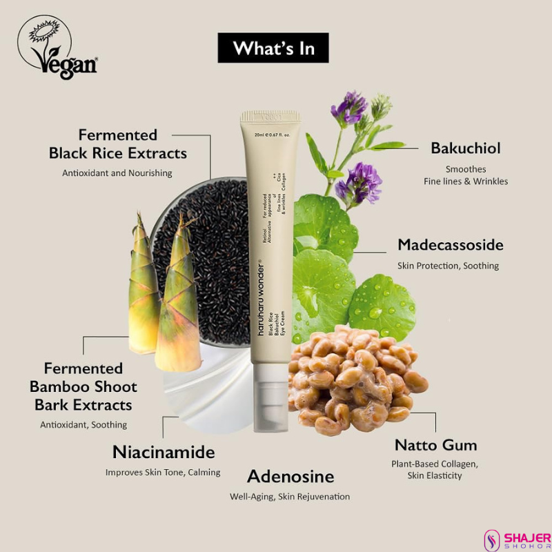✔ Gentle Yet Effective: A perfect blend of Bakuchiol and fermented black rice offers anti-aging benefits without irritating the sensitive skin around the eyes.