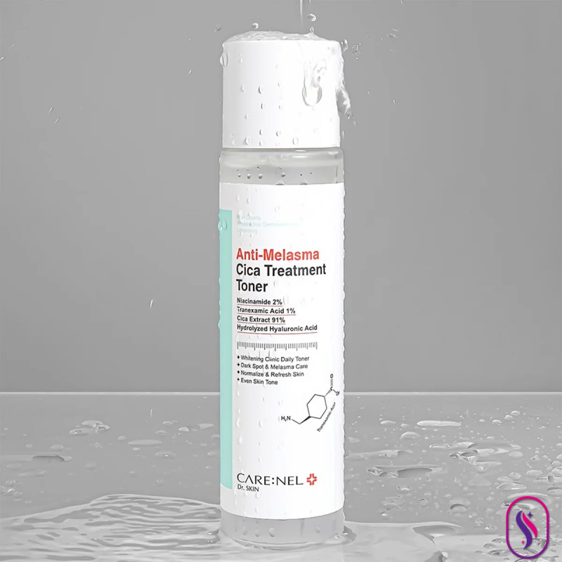 Carenel Anti-Melasma Cica Treatment Toner targets hyperpigmentation with potent centella asiatica extract. This soothing formula helps even out skin tone, reduce melasma, and promote a clearer complexion. Incorporate it into your skincare routine for effective treatment and a radiant, balanced skin tone.