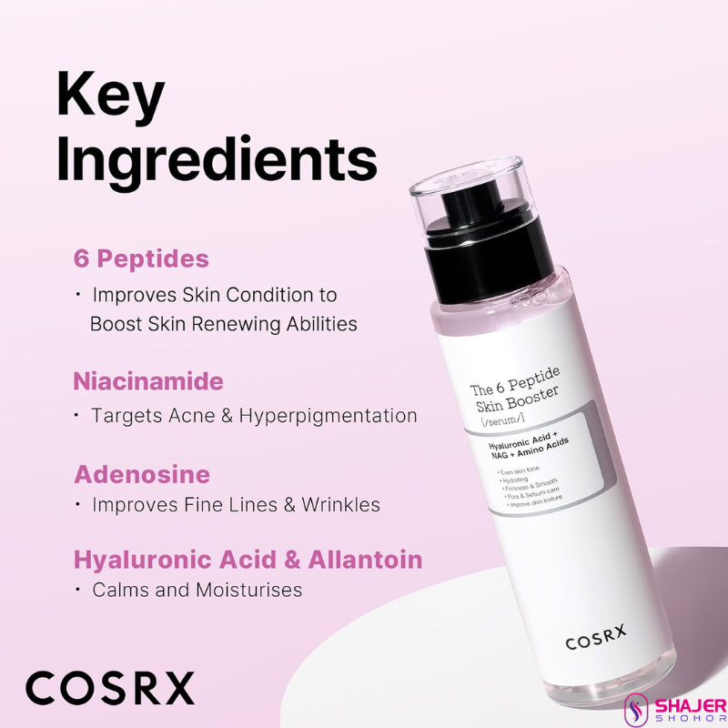 COSRX The 6 Petide Skin Booster is suitable for all skin types and can be used all day and in any season. It is especially ideal for those seeking a lightweight, non-sticky serum to enhance their original skincare routine. Additionally, it is perfect for individuals with complex skin concerns, including those who want to address multiple skin issues like pores, excess sebum, fine lines, and uneven skin texture and tone.