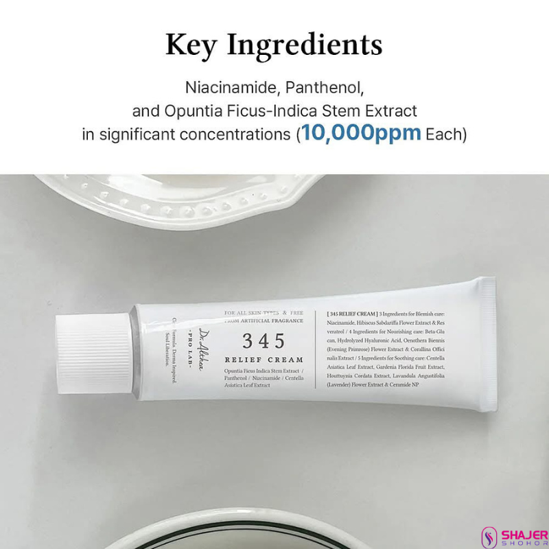 Dr. Althea 345 Relief Cream is a nutrient-rich, gel-cream moisturizer designed to soothe, restore, and hydrate troubled skin. Formulated with three star ingredients at high concentrations (10,000 ppm each)—Niacinamide, Panthenol, and Opuntia Ficus-Indica Stem Extract—this lightweight cream offers powerful post-acne recovery, oil regulation, and long-lasting hydration without any greasy feel.