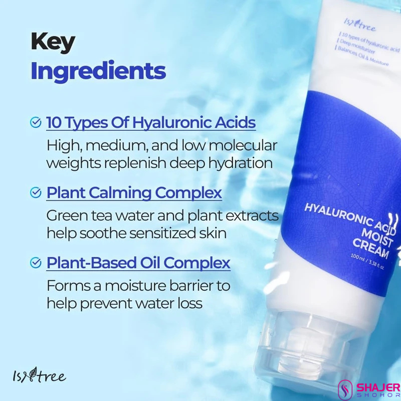 The Isntree Hyaluronic Acid Moist Cream is a highly effective skincare product designed to hydrate and improve the elasticity of the skin. The cream is infused with 5 different types of concentrated hyaluronic acids, which work together to provide intense hydration to the skin. Hyaluronic acid is a naturally occurring substance in the body that helps to retain moisture, and when applied topically, it can help to improve skin hydration and reduce the appearance of fine lines and wrinkles.