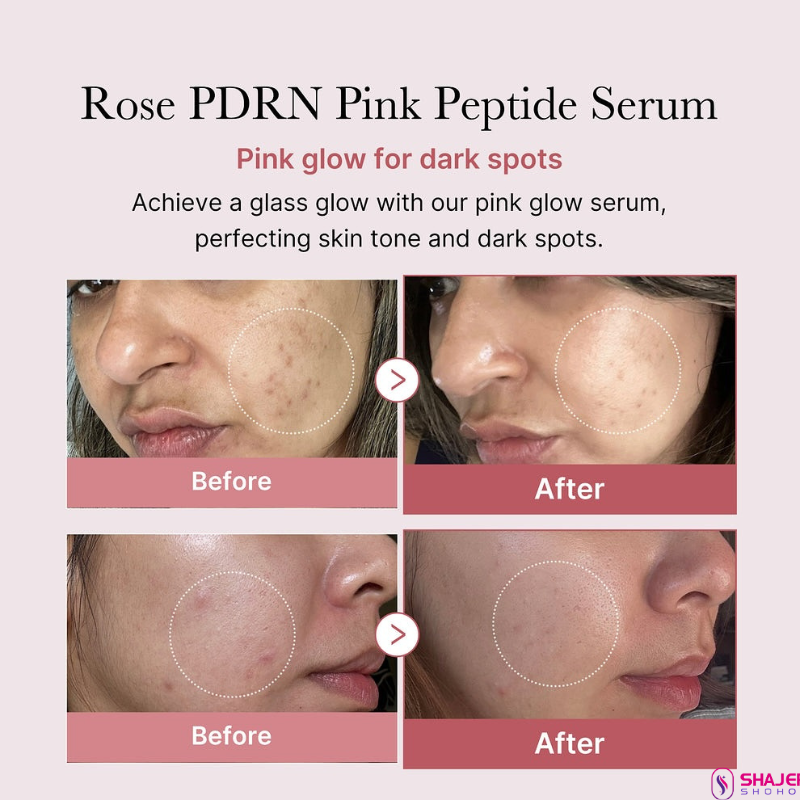 Experience the beginning of uneven skintone and elasticity care with the PDRN Pink Peptide Glow Serum. This advanced glow serum addresses uneven skin tone and enhances skin elasticity, helping to maintain a clear, radiant, and resilient complexion. With visible improvements in as little as two weeks*, it’s the ultimate solution for achieving healthy, glowing skin. The serum’s lightweight and super moisturizing texture absorbs into the skin within minutes, leaving it feeling soft, plump, and glowing for hours.