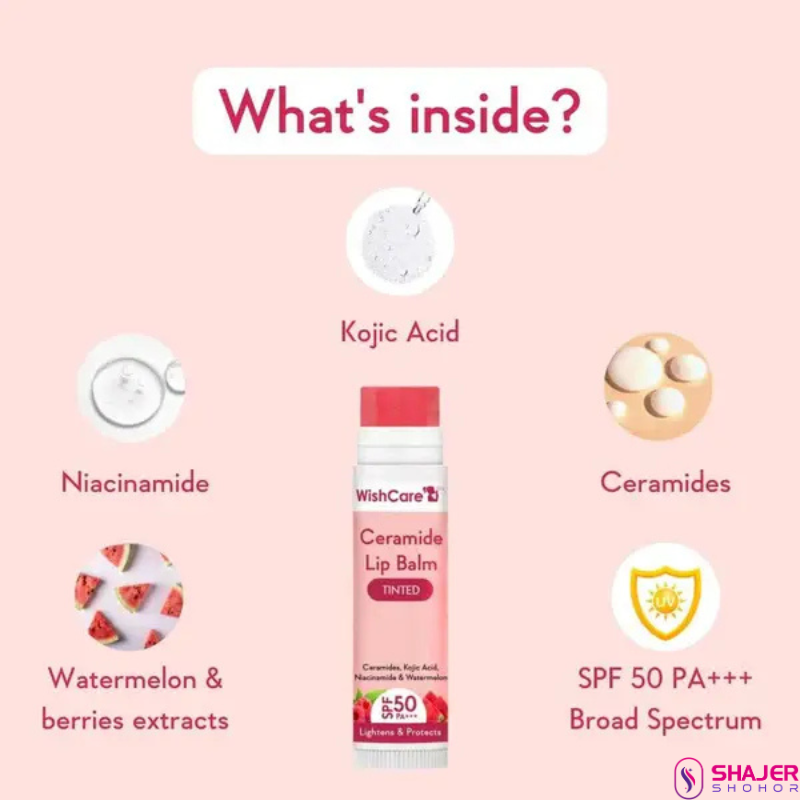 Introducing WishCare Tinted Ceramide Lip Balm – a powerful fusion of skincare and beauty for your lips. Infused with SPF50 PA+++ protection, Kojic Acid, and Niacinamide, this lip balm offers more than just color – it’s your daily dose of lip care.
