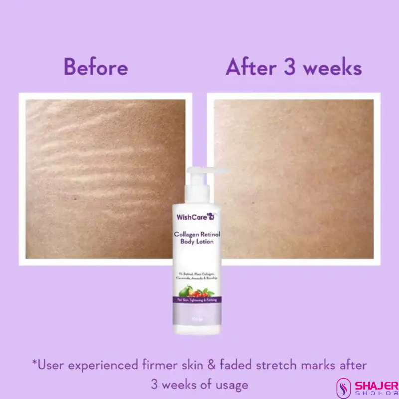 Get smooth and radiant skin with the Wishcare Collagen 1% Retinol Body Lotion (200ml). This avocado body lotion locks moisture in the skin for intense hydration. It is an anti-aging lotion that reduces the signs of aging. The WishCare body lotion is also a moisturizing lotion that plumps your skin.